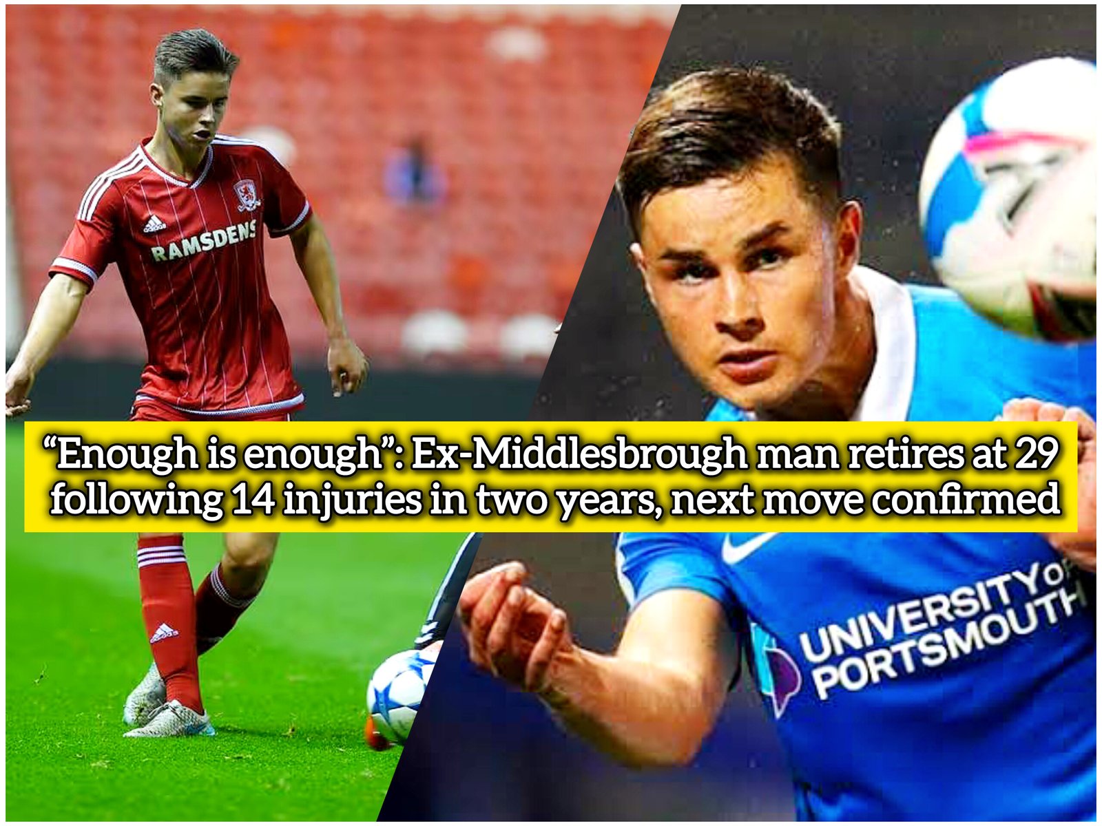 ‎“Enough is enough”: Ex-Middlesbrough man retires at 29 following 14 injuries in two years, next move confirmed - soccertrend