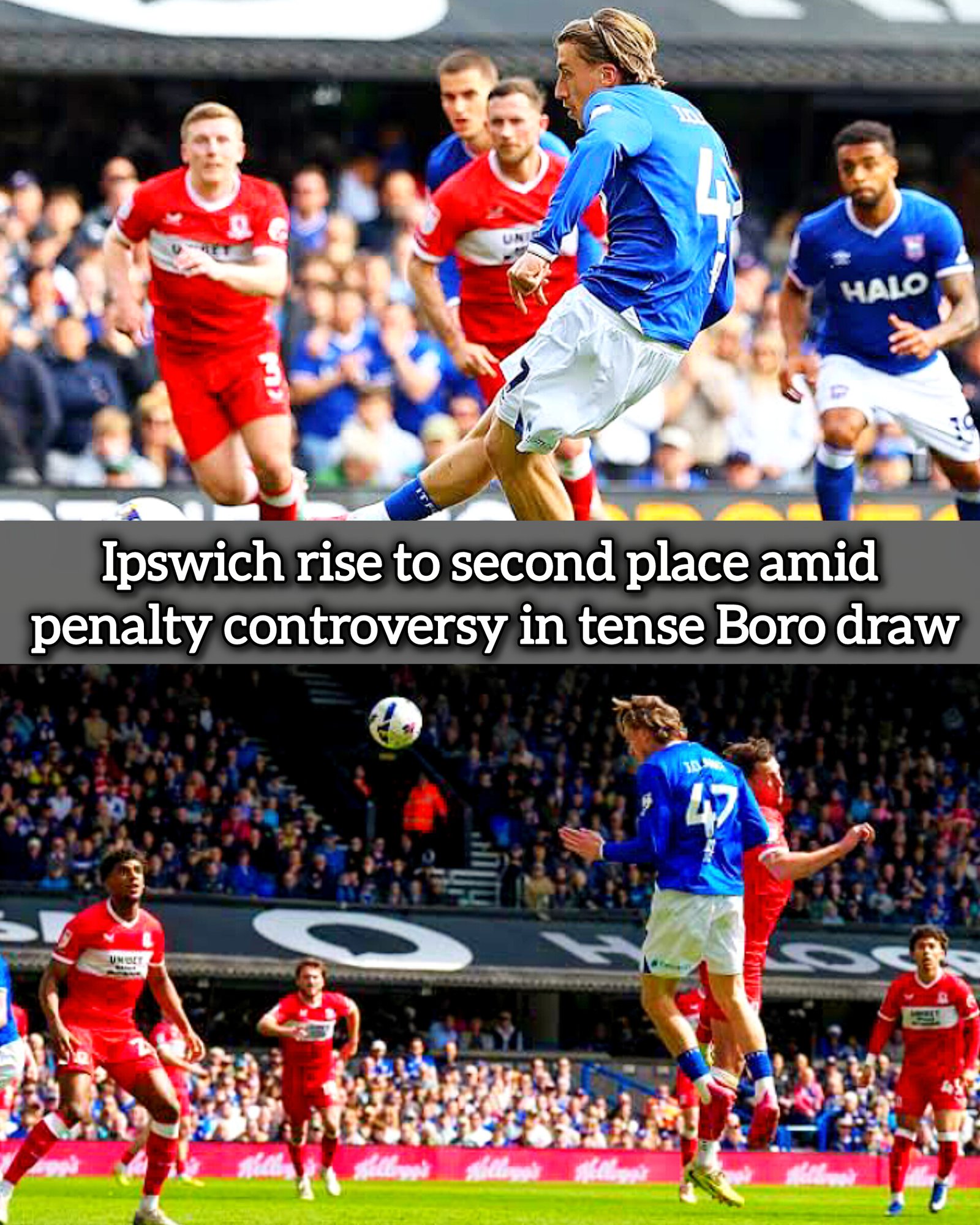 Ipswich rise to second place amid penalty controversy in tense Boro draw